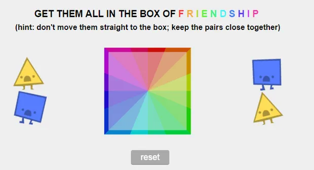 将这些形状放入彩虹盒子实际上相当困难且微妙,但这是值得的。最后会有五彩纸屑。而且,你知道,一个包容的社会。