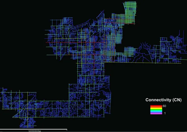 连接的空间地图。连接最紧密的路径用红色标出,这些路径与许多街道相连,为行人提供了多条路径选择。Watts的研究发现,一个地方的连接性与其老年居民在认知测试中的表现之间存在关联。Farhana Ferdous,堪萨斯大学建筑系“似乎有一个人对空间环境的心理表征的组成部分,例如,能够像心理地图一样想象街道,”Watts在一份声明中说。“复杂的环境可能需要更复杂的心理过程来导航。我们的研究结果表明,居住在需要更多心理复杂性的社区的人,实际上在其心理功能上随着时间的推移经历的衰退较少。”