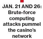 黑客在1月21日和26日加大了攻击力度,再次对贝ethlehem Sands网络发起了数小时的攻击。后来,调查人员发现至少有两个不同的黑客或团队在尝试不同的方法进入。当时,贝ethlehem的IT经理们对突然激增的失败登录尝试感到震惊,开始与拉斯维加斯的Sands安全经理进行电话会议。但暴力破解尝试是很常见的——根据休斯顿安全公司Alert Logic的说法,几乎一半的公司都会经历这种情况——而赌场工作人员并没有过于担忧。他们在受到攻击的账户上增加了一层安全措施,因此进入网络不仅仅需要密码。