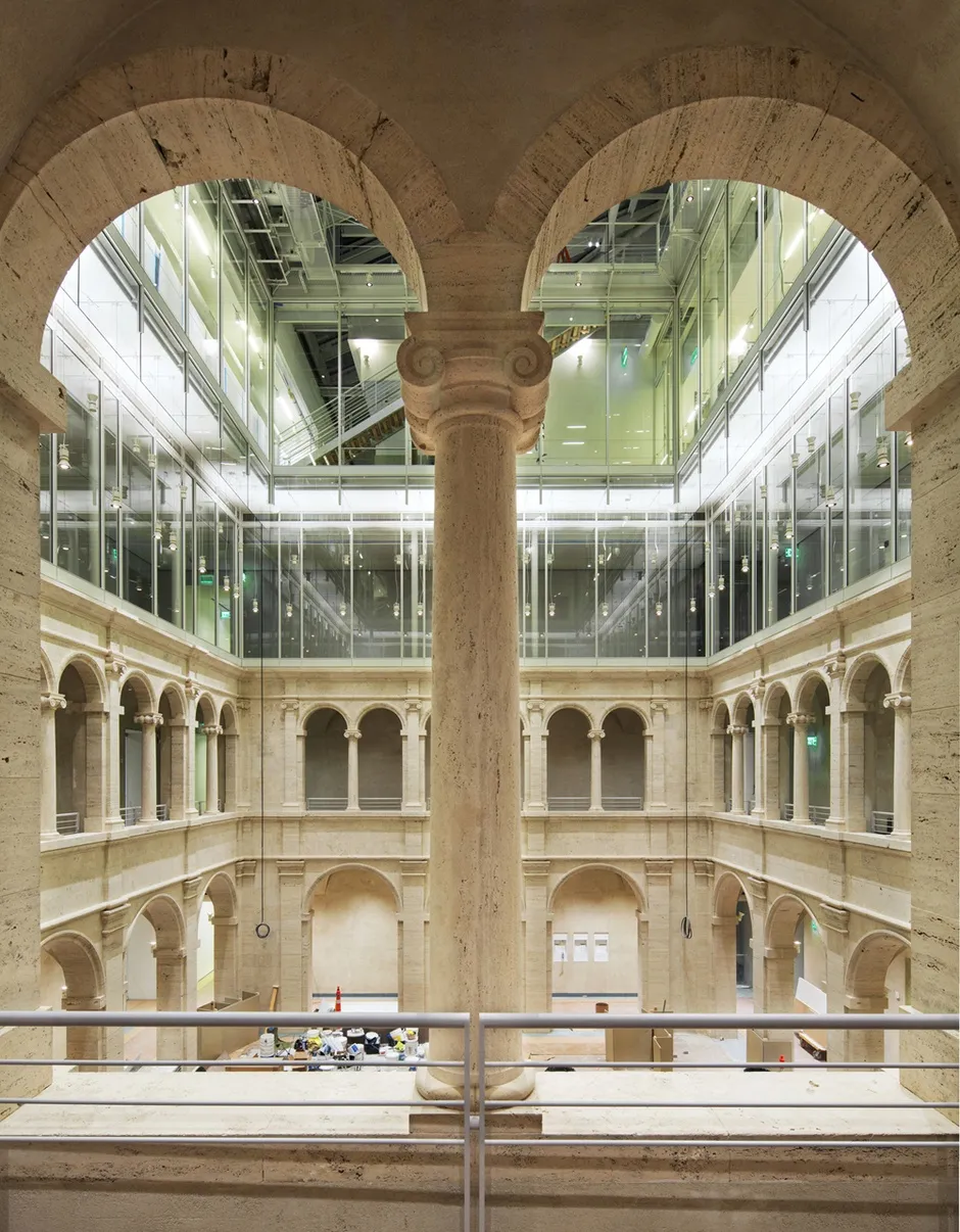 内部庭院安东尼·弗林特我那些建筑师朋友在其他情况下可能称之为“外立面改造”的最终结果是新的扩建部分,底部采用优雅的阿拉斯加黄雪松和花岗岩。新部分在后面鼓起,覆盖在红砖结构的顶部。在内部,访客会看到美丽的保存完好的庭院,现在因高耸的玻璃中庭而充满光线。确实有广泛的新画廊空间,适合在周日下午进行沉思漫步。而且还有闪亮的新一流研究实验室和图书馆,以及高科技的策展空间,配备明亮的灯光、刷子和锋利的实用刀。不过,在外部,无法回避的现实是,新部分被附加在旧部分上。