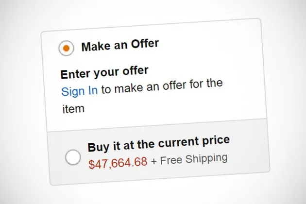 亚马逊 现在正在接受出价。在亚马逊上销售的商家可以启用“出价”功能,允许客户提供低于标价的报价。卖家可以接受、拒绝或反报价。如果有人提出反报价,买卖双方可以通过电子邮件讨价还价——如果达成协议——则支付亚马逊的佣金。到目前为止,该选项仅适用于网站上的150,000种商品,主要是艺术品和收藏品。