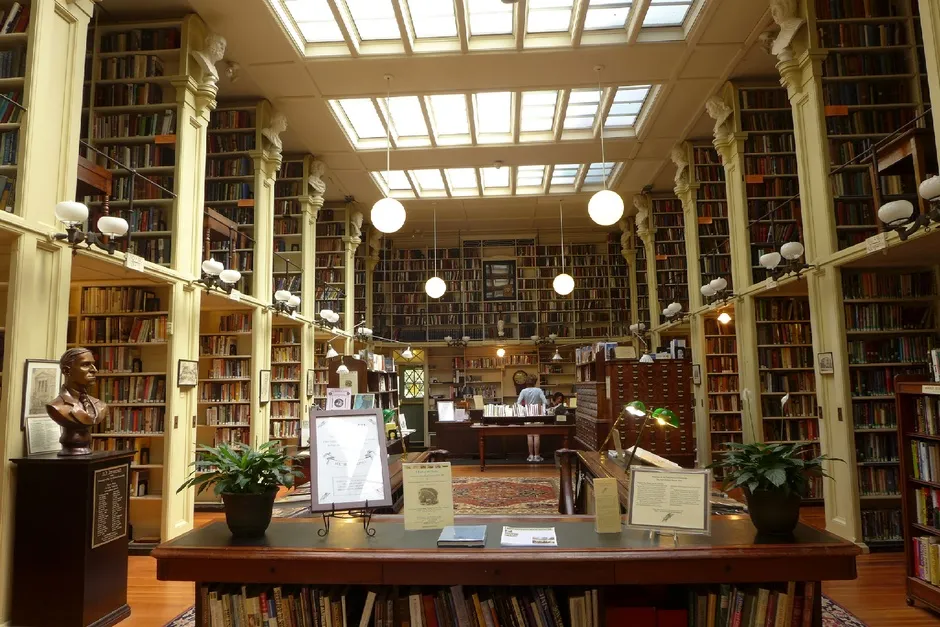 普罗维登斯图书馆的一个沙龙弗兰克·穆林在1838年7月普罗维登斯图书馆的福利街建筑开幕时,布朗大学校长弗朗西斯·韦兰发表了长达两个小时的演讲,采用19世纪演说的夸张风格,描述这个新机构为“一个活水的泉源,能够满足整个社区的知识渴望。”尽管图书馆是一个会员制图书馆——读者必须支付年费才能借书——但在美国公共图书馆普及之前,它旨在服务普罗维登斯社会的每一个阶层。