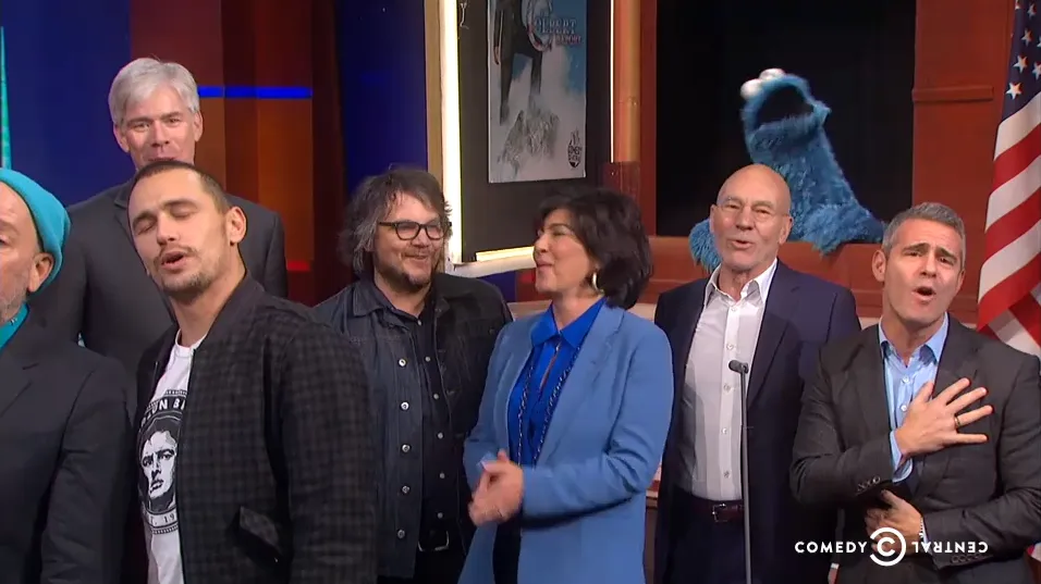 来源:喜剧中心在这广阔的互联网领域中,有人手指灵活,DVR随时待命,今天中午可以自由上班,他们将整理出一份与斯蒂芬·科尔伯特一起在他最后一集《科尔伯特报告》中演唱《我们会再见》的名人(和非名记者)名单。每个脱口秀的最后一集当然都有名人客串,但最后一集《科尔伯特报告》因其 众多 的名人而显得特别。几乎你认识的每一个人,或者曾经见过的人,甚至在杂货店里见过的人,都在那一瞬间出现:我在乔治亚州观看节目,我仍然觉得我在节目中看到了自己。