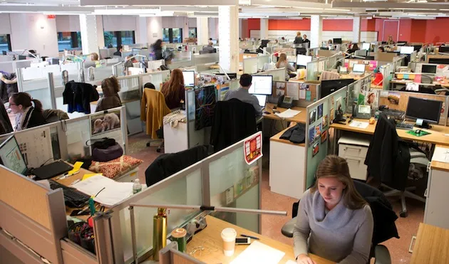 Grey的40名助理客户执行官被分组在办公室的一个区域,称为基地营