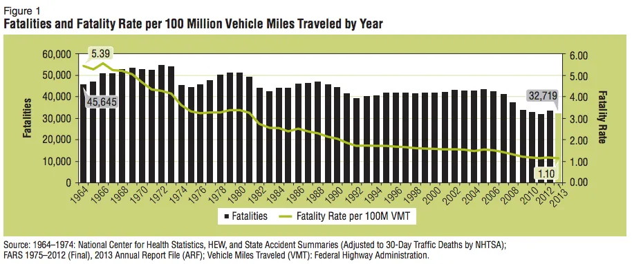 然而,对于在车外而非车内的人来说,消息就不那么令人安心了:“非乘员死亡人数”在10年间从总死亡人数的14%上升到17%。2012年至2013年间,被司机撞死的行人数量确实有所下降,但仅下降了1.7%,降至4,735人。而长期趋势并不乐观。事实上,2013年的行人死亡人数比2009年高出15%,当时的死亡人数创下历史最低。