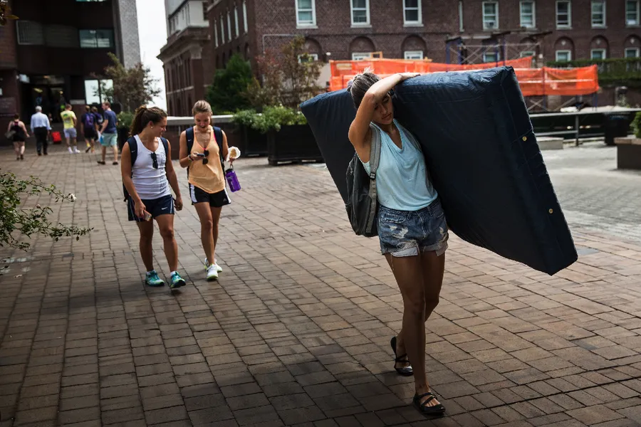 艾玛·苏尔科维茨,承载那份重量。公共表演是部分艺术作品,部分抗议。安德鲁·伯顿/盖蒂图片社在哥伦比亚大学,艺术学生艾玛·苏尔科维茨今年因 承载那份重量,她的毕业论文而广受赞誉——这是一个她非常希望能取消的项目。自学期初以来,苏尔科维茨在校园内随身携带她的床垫;这件作品是对大学决定不对一名她称之为强奸她并袭击其他两人的学生采取行动的抗议。 (那名学生,保罗·农格塞尔,已经 公开表态 说他是一个针对性欺凌活动的受害者。) 这位艺术家曾表示,如果需要,她可能会在毕业时继续携带她的床垫,激励了其他校园的类似表演。