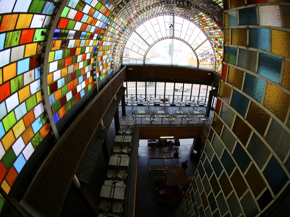 或许这个项目最大的成功是Hub Stn,墨西哥的“第一个双边共享办公空间”。这个共享办公空间位于一个旧的墨西哥巴士总站,一个初创企业集群为这个在暴力期间沉寂的车站注入了新生。位于革命大道——以酒精、廉价商品和非法刺激而闻名的阴暗街区——这座建筑鲜艳的彩色玻璃拱门如今庇护着蒂华纳蓬勃发展的科技行业,接待着包括Epiqueya、Bc creativa和Ahorrolibre在内的十几家公司。