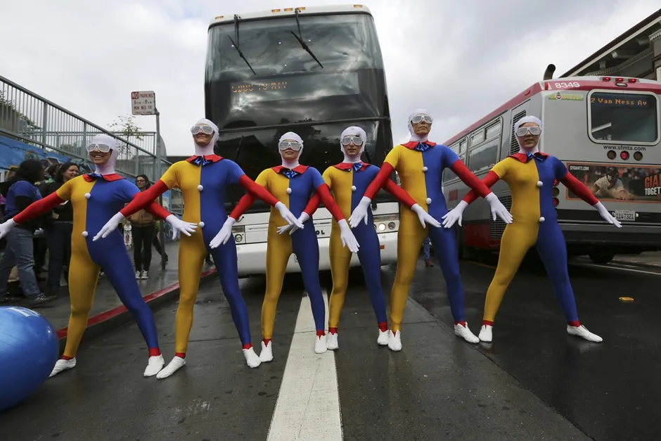 2014年4月1日,加利福尼亚州旧金山的抗议者阻挡了一辆前往山景城的谷歌通勤巴士。抗议者在使命区阻挡了这辆巴士,突显出许多居民对富裕科技工作者涌入导致城市成本上升的日益担忧。路透社/罗伯特·加尔布雷斯