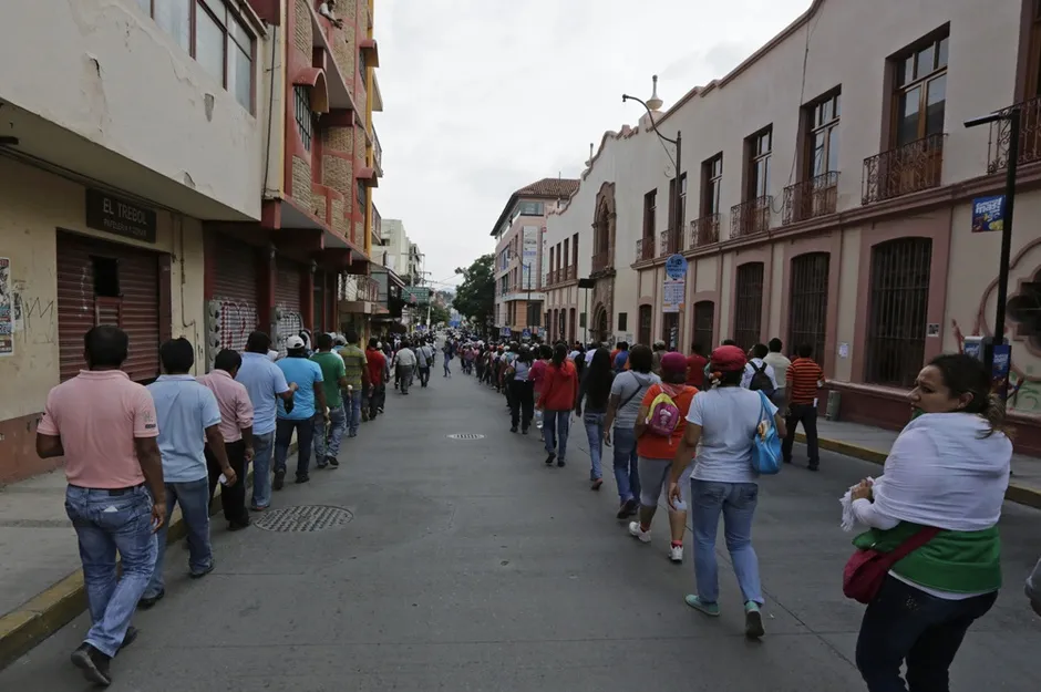 阿约特津帕教师培训学院“劳尔·伊斯德罗·布尔戈斯”学生的家人和朋友在10月14日的抗议活动中游行,要求政府找到他们的43名同学。9月26日,警方据称与一个犯罪团伙有关,在西南城市伊瓜拉的冲突中至少射杀了三名学生,并绑架了数十名其他学生。路透社/亨利·罗梅罗