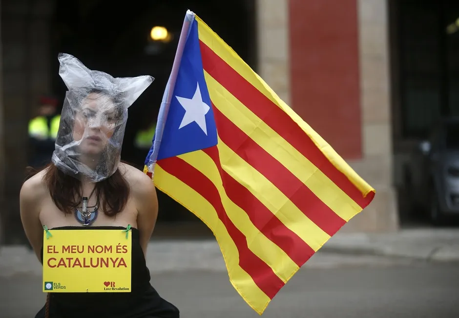 一名举着“我的名字是加泰罗尼亚”标语的支持独立抗议者坐在加泰罗尼亚地区议会前,2014年1月16日,巴塞罗那。西班牙东北部加泰罗尼亚地区的地方立法者投票寻求就脱离西班牙进行公投,准备与在马德里坚决反对的中央政府展开斗争。巴塞罗那的加泰罗尼亚议会以87票对43票通过,3票弃权,向国家议会提交请愿,寻求召集关于该地区未来的公投权。加泰罗尼亚的独立运动拥有自己的语言,并占西班牙国家经济的五分之一,直接挑战首相马里亚诺·拉霍伊,他承诺从宪法角度阻止公投。路透社/阿尔贝特·盖亚