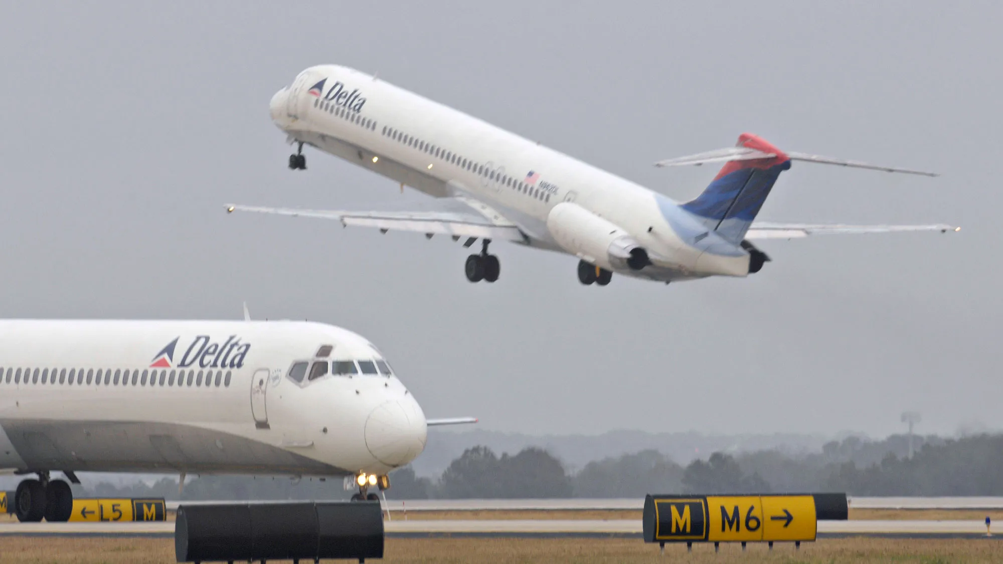 埃尔塔飞机在亚特兰大哈茨菲尔德-杰克逊国际机场滑行和起飞,时间是2006年12月21日。