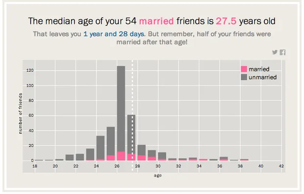 我那些爱打听的阿姨会喜欢这个应用,你的阿姨也会喜欢。这就是为什么 《时代》应用可以告诉你什么时候会结婚 被列入这个名单。这个应用利用你的Facebook朋友(尤其是那些发布婚礼照片的朋友)来判断这一点,这正是我那些爱打听的阿姨在现实生活中做的事情IRL*.* 我们为什么还需要这个应用呢?