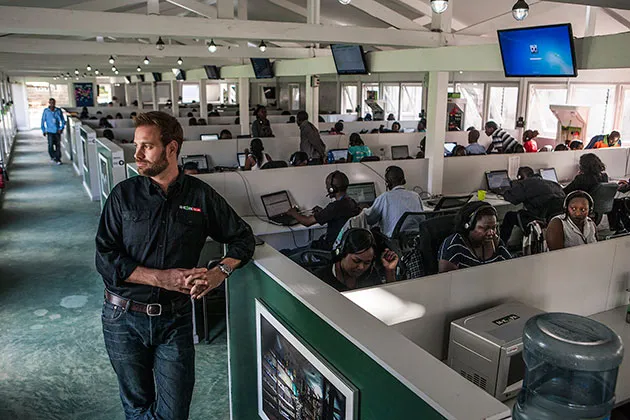 但内罗毕可以考验任何人的耐心。你必须应对可怕的停电和交通、普遍的腐败以及不确定的安全。“有很多23岁的布朗大学学生,他们将在18个月内回到美国,”彼得·格罗斯说,他离开亚特兰大来建立MicroEnsure的非洲业务,该公司为全球超过1000万人提供健康和人寿保险,其中大多数在非洲。“我并不是在贬低这一点,但你必须享受艰难的事情。”