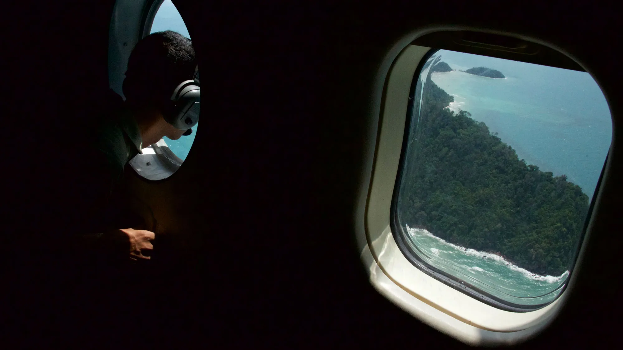 印度尼西亚海军飞行员在印度尼西亚邦卡岛附近的海域搜索亚航QZ8501航班的残骸,使用的是海军固定翼巡逻艇。