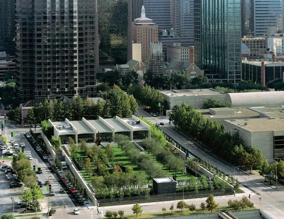 纳舍雕塑中心,由伦佐·皮亚诺建筑工作室设计,2003年PWP景观达拉斯并不是一个无可指摘的选择。REX的约书亚·普林斯-拉穆斯实际上在怀利剧院上担任主导,而不是OMA的雷姆·库哈斯,稍微挑剔一下。约翰逊的感恩广场与其他选择有所不同。达拉斯的新博物馆塔正在努力融入纳舍雕塑中心。没有足够的联系线索来称艺术区为一个社区——至少现在还不是。