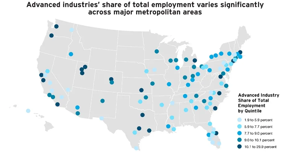 作为一个国家,美国在其先进产业部门受益匪浅。但与其他许多方面一样,这些产业变得越来越不均衡和波动,其显著的好处仅限于全国越来越少的城市和地区。