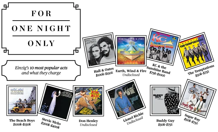 摄影师:Andrew Hetherington](https://media.gotraffic.net/images/i0rqsF3XsF58/v11/460x260.jpg)这种情况在2008年不再那么频繁;当经济崩溃时,客户不想显得奢侈。但现在,Einzig说,生意从未如此好。去年是Booking Entertainment有史以来最大的一年,约有100场演出和450万美元的销售额,部分原因是对九十年代表演的需求激增,如Salt-N-Pepa、Coolio和Sugar Ray。“那些在听那种音乐长大的人,他们现在30多岁,拥有可支配收入,”Einzig说。“他们可能不想承认,但他们已经到了怀旧的阶段。”