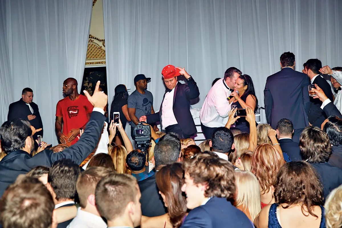 年轻的MC和Rob Base已经离开去他们的酒店房间,但Einzig和Base的30岁侄子Michael Walker——他是Base的DJ——正在准备去附近的Delray Beach。“特朗普早些时候在婚礼上,带着两个保镖,”Einzig说。“唐纳德!”Walker惊呼。在到达现场之前,他承认,他并不知道自己会在一个“五星级”的婚礼上表演。“我喜欢那样的观众,他们知道自己在期待什么,”Walker说。“一些奶奶们也在嗨。”