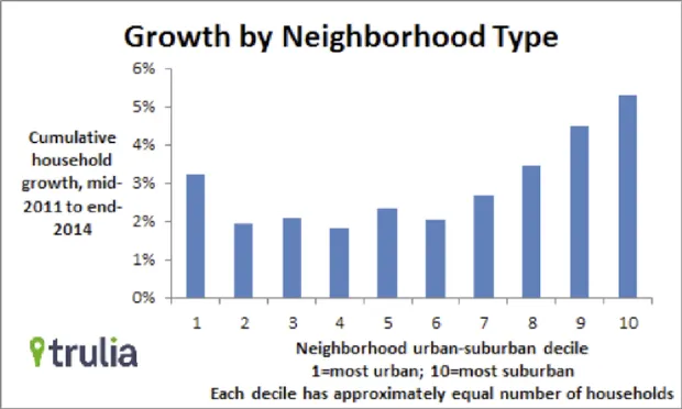 简而言之,郊区化的郊区最近增长速度快于更城市化风格的郊区。