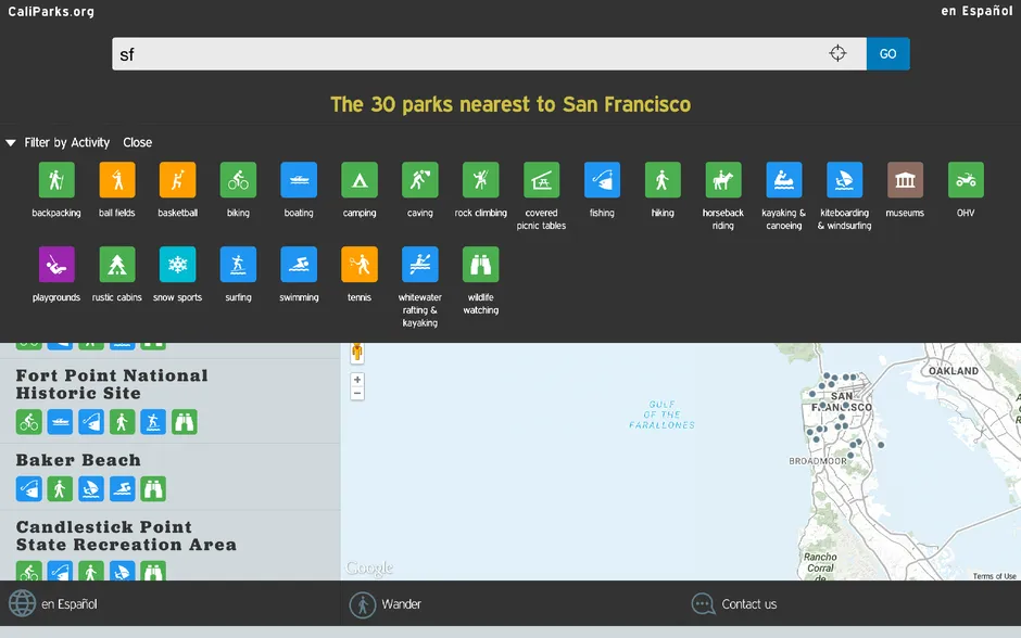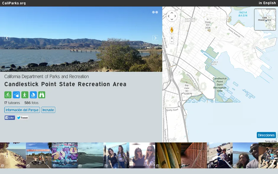 这个新的网络应用从Instagram和Flickr中提取图像,以向用户展示使用加州州立公园的各种人群。CaliParks.org该应用是Stamen Design的作品,这是一家在地图和开放数据方面拥有丰富经验的数据可视化设计公司。CaliParks允许用户根据距离和所需活动过滤搜索,使得发现甚至是鲜为人知的公园变得容易。它提供地图和官方公园网站的链接。但它真正的创新在于,它每天从Flickr和Instagram中提取图像,给用户提供一个动态的肖像,不仅展示公园的自然美,还展示了游客使用公园的方式。该应用与GreenInfo Network、Hipcamp和Latino Outdoors合作设计,并得到了资源遗产基金的支持,同时记录与每个公园相关的Twitter和Foursquare流量。
