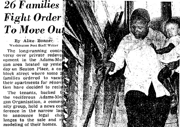 一些黑人家庭选择留在原地,但社区的部分成员认为他们被“红线”——因为他们所在的社区不够“理想”(即:不够白)而被拒绝获得住房贷款。在1972年,在斗争的过程中,一个名为亚当斯摩根组织的社区团体成立,旨在帮助当地租户购买他们的房屋。弗兰克·史密斯,一位搬到该社区的民权活动家,领导了该组织(后来成为华盛顿特区议会成员)。