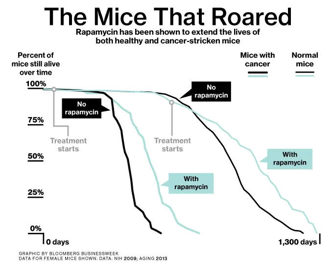 在此后的几年里,雷帕霉素被用于多种用途。像青霉素一样,它是一种生物制剂,因此无法申请专利,尽管其衍生物可以。现在,它被常规用作心脏支架的涂层,以防止疤痕和堵塞。雷帕霉素的衍生物已被批准用于治疗某些肾脏、肺部和乳腺癌。这可能只是个开始。在过去十年中,它显示出作为一种药物的潜力,不仅可以通过延缓与衰老相关的疾病(如癌症、心脏病和阿尔茨海默病)的发生来延长生命,还可以推迟正常衰老的影响。瑞士制药巨头诺华(市值2600亿美元)开始采取第一步,将一种雷帕霉素的版本定位为首个真正的抗衰老药物。