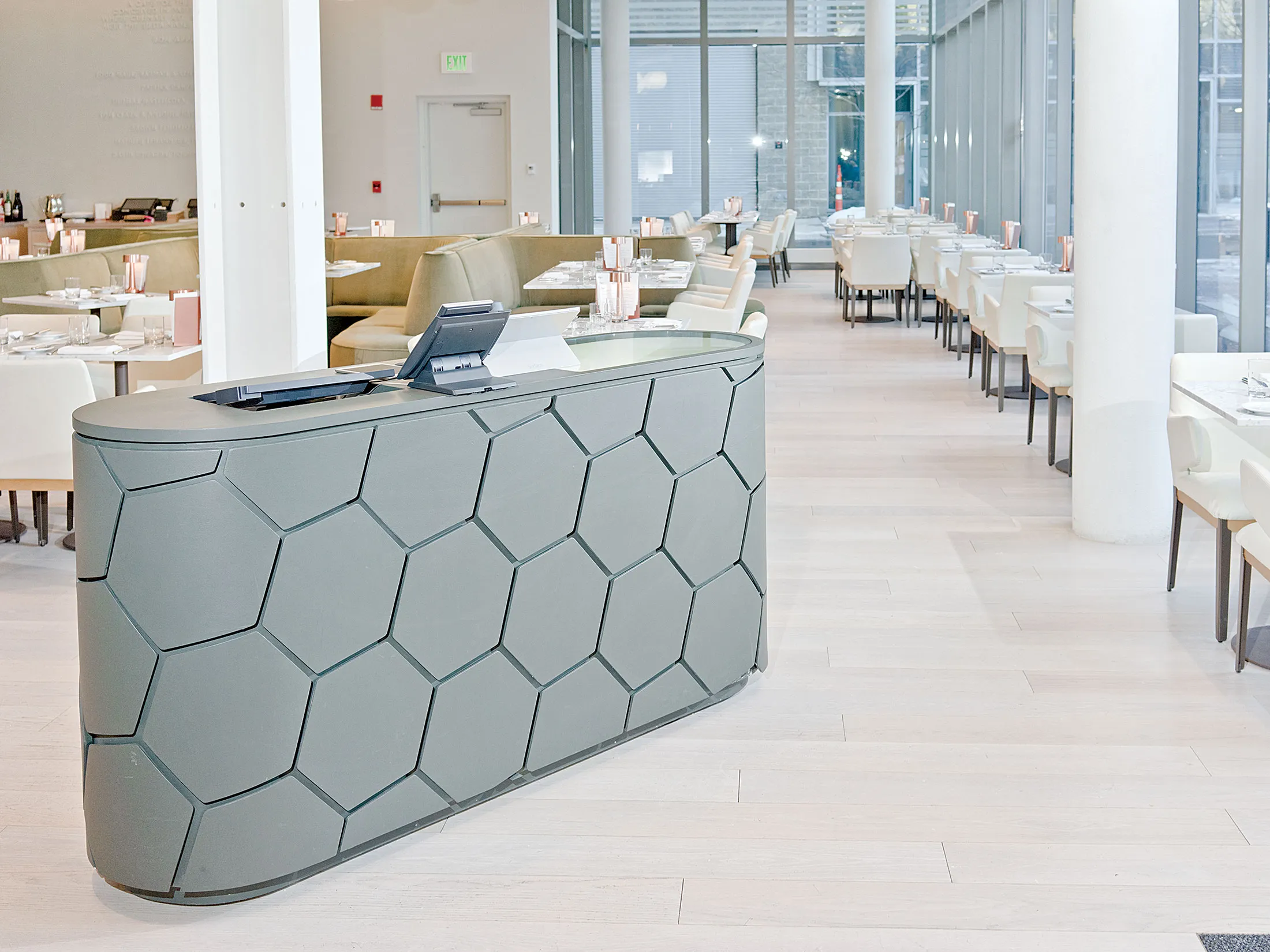 餐厅摄影师:哈里·古尔德·哈维四世,来自《彭博商业周刊》尽管有零售元素,Café ArtScience也作为一家正宗餐厅运作。它与谷歌、微软和Akamai Technologies的卫星办公室共享肯德尔广场的邻里,吸引了波士顿的科技精英,以及来自麻省理工学院和哈佛大学的教授,这些学校距离不远。厨师帕特里克·坎贝尔来自波士顿的Eastern Standard,制作现代法式菜肴,如盐鳕鱼浓汤中的南塔基特湾扇贝。他在厨房中很少使用爱德华兹的发明,但他已经开始尝试;最终,他表示,他希望Le Whaf能为某些菜肴增添互补的味道。鸡尾酒大师毛尔则尝试得更多。当爱德华兹在十一月雇佣他时,他已经因在波士顿的Clio餐厅使用离心机、蒸发器和其他实验室设备而闻名。