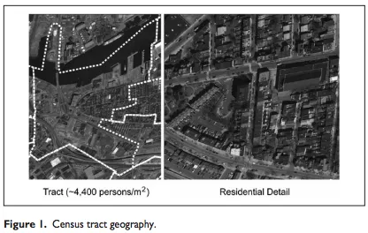 Laidley一项 新研究由 Thomas Laidley,一位在纽约大学的社会学博士生(我也在此担任研究职务),利用卫星图像开发了一种新的改进版“城市扩张指数”,并将其与广泛的结果指标联系起来。Laidley使用这些航拍图像(见上文)来估算普查区块级别的城市扩张,这是可用的最小级别,估算这些区块中大都市人口在三个关键阈值以下的比例:每平方英里3,500人、8,500人和20,000人。他的指数基于这三个值的平均值,得分越高反映城市扩张水平越高。