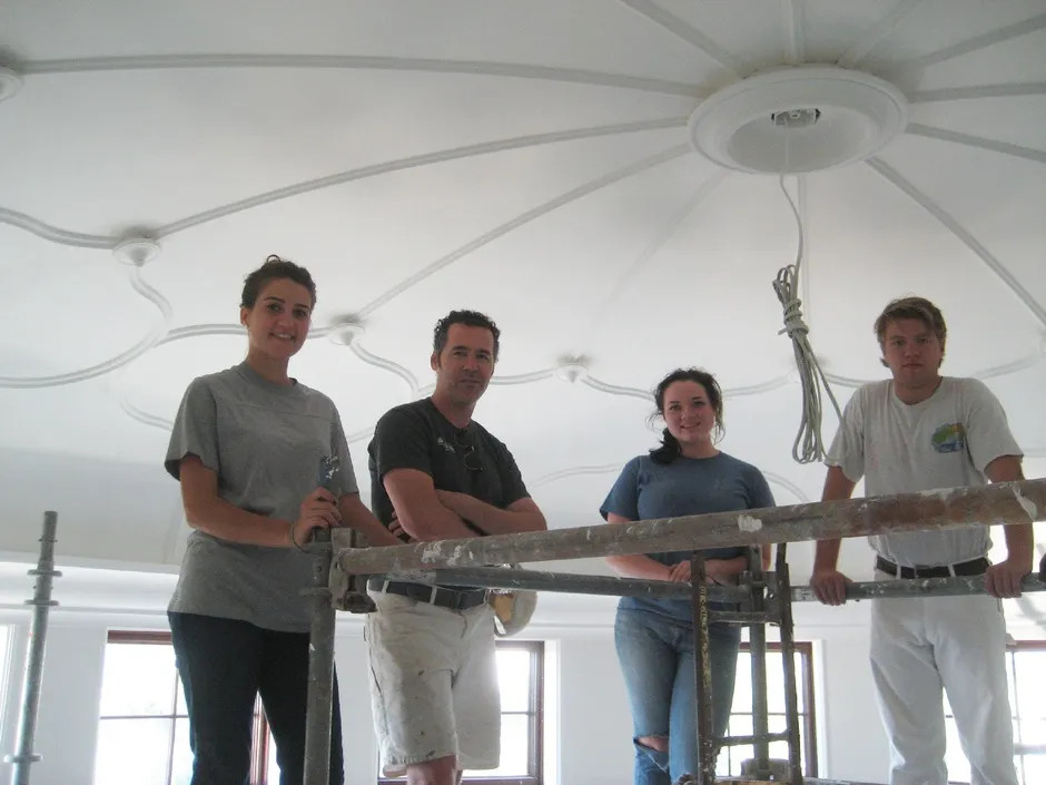 ACBA团队在南卡罗来纳州的沙利文岛制作新的抹灰天花板。从左到右:Daniella Helline、Patrick Webb教授、Jacqueline Urgo和Alex JoyceACBABroadwater承认,学院在最初几年经历了波折,面临预算短缺和行政动荡,但其教育项目赢得了广泛的赞誉来自保护倡导者。从长远来看,他认为,学校的使命不仅关乎历史保护,也关乎环境保护,因为毕业生将能够在一个美学上相同的连锁商场和乙烯基包裹的麦克曼逊时代中维持精细的工艺。