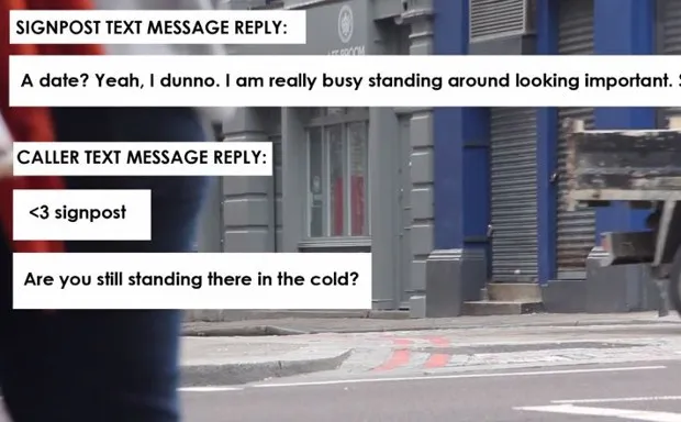 m.obstr你会觉得被一个无生命的金属指示牌拒绝会让人感觉糟糕。但伦敦的一位被拒绝的女性对此反应很好,回应了这个街道设施:“<3 指示牌。”
