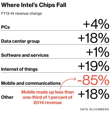 摄影师:帕特里克·T·法伦/彭博社尽管英特尔是全球领先的PC和服务器芯片制造商,但该公司长期以来一直难以在高通主导的移动市场中占据重要份额。去年,英特尔的收入为559亿美元,比前一年增长了6%;其移动部门的收入为2.02亿美元。对于英特尔来说,在美国或欧洲追赶可能已经为时已晚,因为几乎所有打算购买智能手机或平板电脑的人都已经拥有一款搭载竞争对手芯片的设备。因此,该公司并没有争夺下一个iPhone合同,而是将数十亿美元投入到扩大在中国的影响力,因为该国大约5亿手机用户中不到一半拥有智能手机。