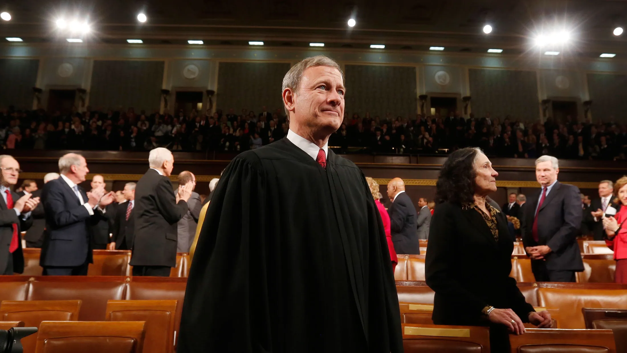 美国最高法院首席法官约翰·罗伯茨在2014年1月28日华盛顿特区国会山出席总统巴拉克·奥巴马的国情咨文演讲之前到达。