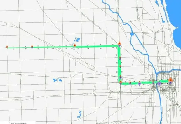 2013年9月的ITDP分析发现连接Ashland和Central Loop BRT走廊的服务计划的潜在好处(顶部,沿Division的S形连接器)。ITDPCTA发言人Steele表示,目前没有连接Central Loop和Ashland的服务计划,但“未来可以考虑一个”。当然,那个未来假设Ashland能够建成。