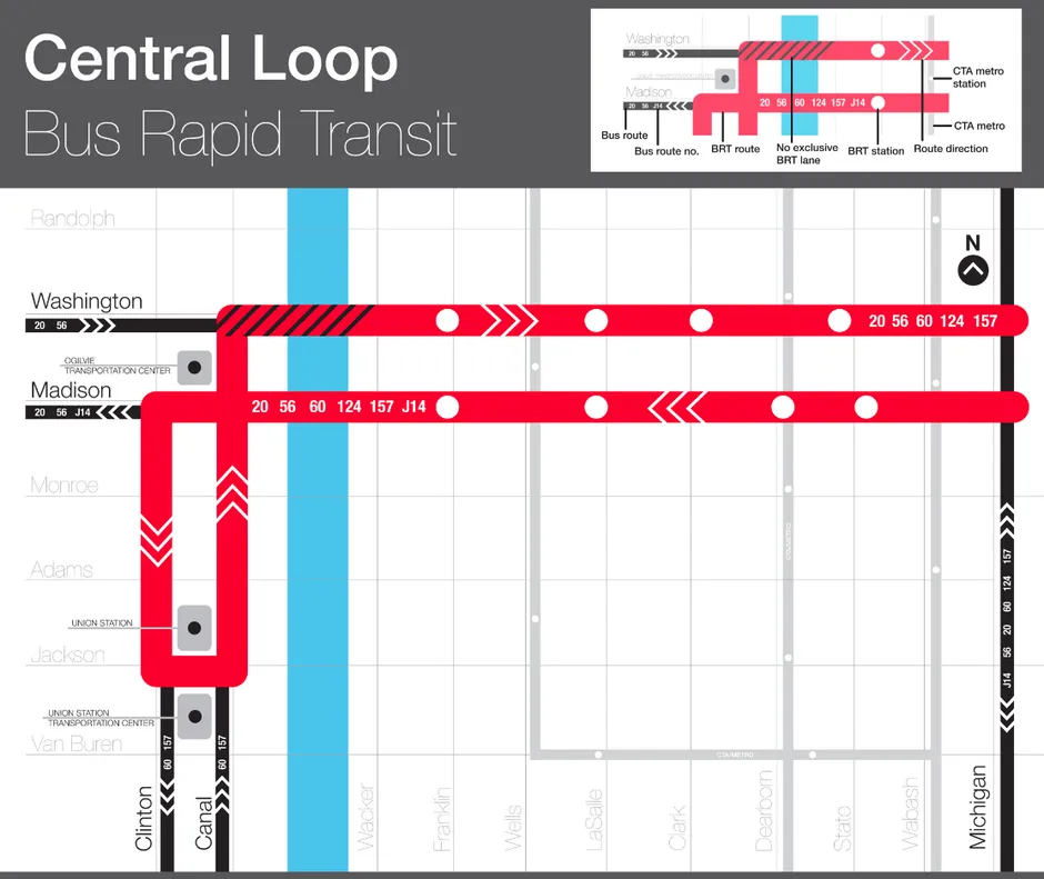 中央环路快速公交(如上图,效果图)将于三月开工。芝加哥市让我们从一开始就承认,芝加哥期待已久的、备受瞩目的 中央环路快速公交项目,计划于三月开工。基本框架本身就是一项成就:在美国最拥堵的城市之一,近两英里的专用快速公交车道。中央环路快速公交将服务于 六条公交线路,保护新的自行车道,连接城市铁路服务,并减少大约一半通过该走廊的轮式交通的旅行时间。一半。