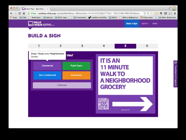 Walk [Your City]的在线工具允许用户设计自己的标志。Walk [Your City]Walk [Your City]将与政府和社区合作伙伴合作,在列克星敦和圣荷西开展“指引活动”,旨在教育和吸引市民如何规划更适合步行的社区。Tomasulo表示,最终目标是在2015年底发布一个“真正的DIY步行便利工具包”,使社区能够将指引活动整合到传统的规划过程中。