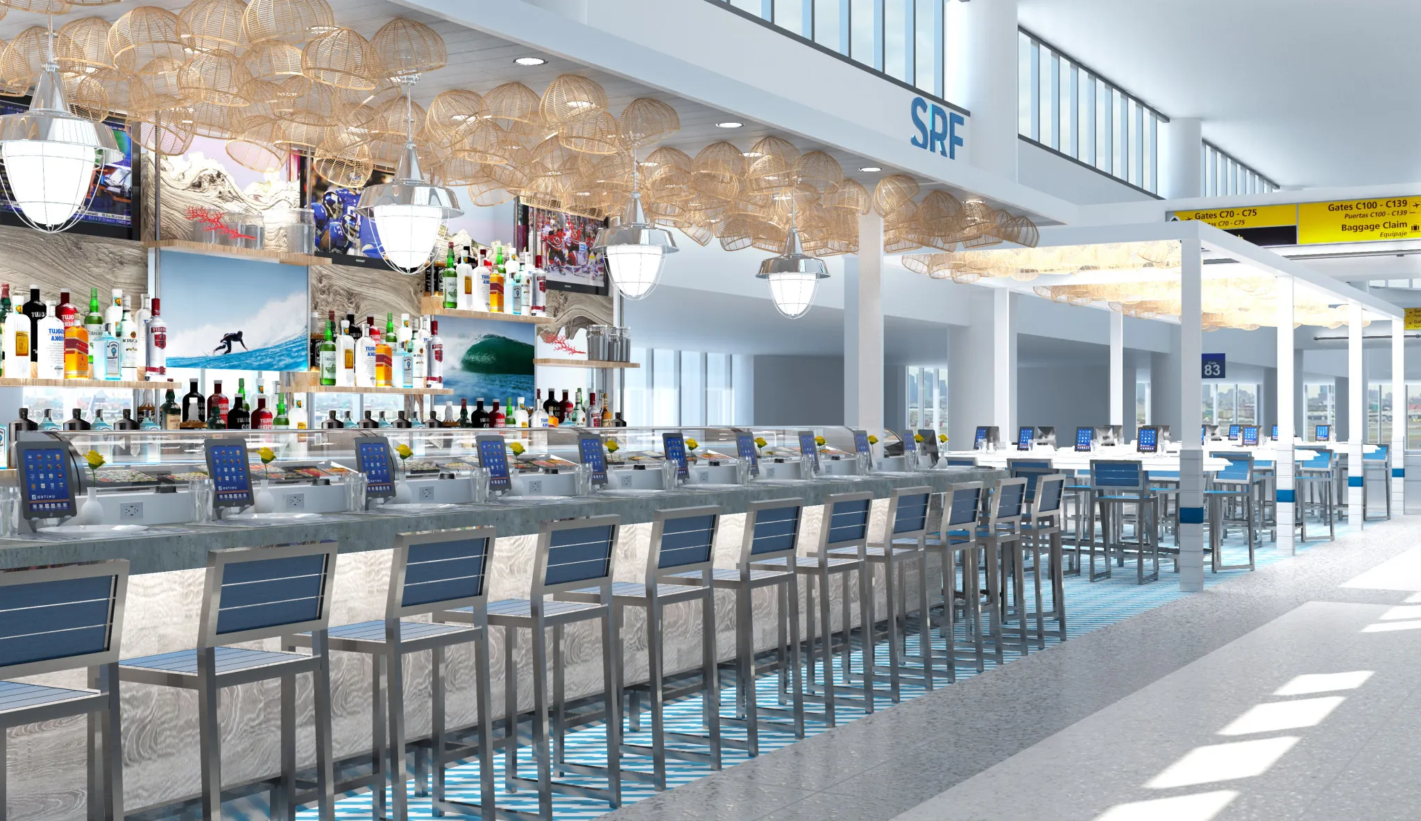来源:Rockwell Group & OTG Management对于SRF,厨师Josh Capon的酒吧,Rockwell将在上方安装一系列定制和现成的篮子,以及在服务员后面的漂流木,以暗示海鲜主题的菜单。