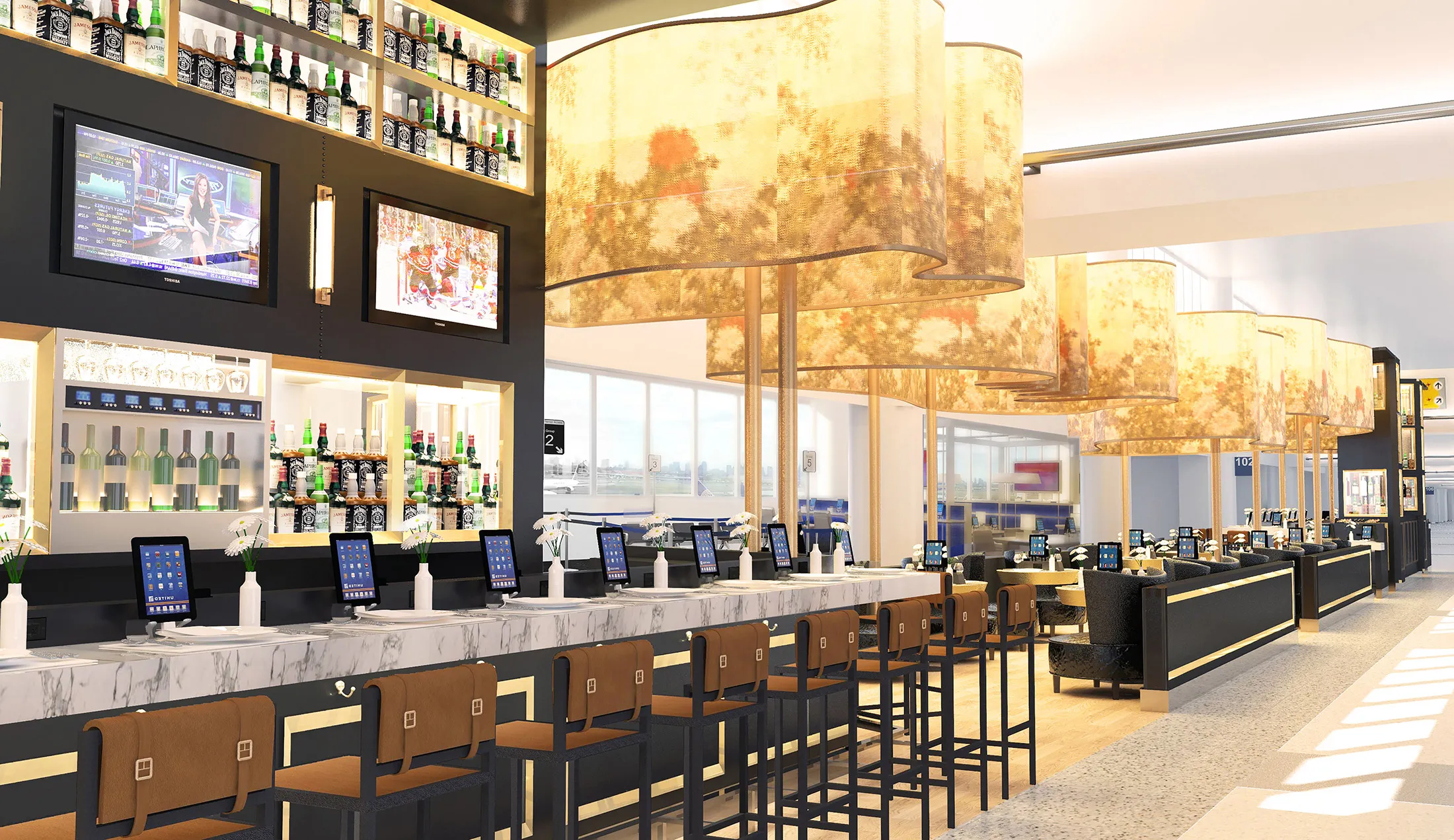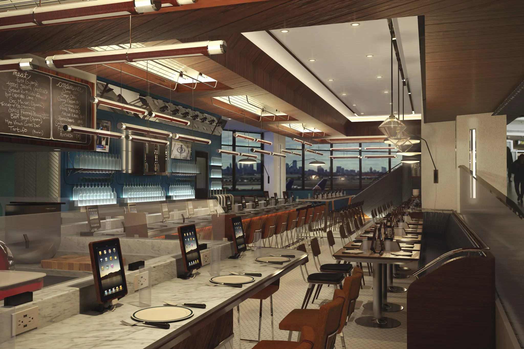 来源:罗克韦尔集团与OTG管理所有餐厅、酒吧和食品摊位都有一个共同点:每个座位都有一台iPad,总共有6000台平板电脑在这座100,000平方英尺的航站楼内。联合航空的客户将能够使用常旅客里程支付账单,并通过扫描登机牌来监控航班信息。OTG,航站楼的运营商表示,这是世界上第二大面向客户的iPad平台,仅次于苹果的零售店。OTG正在资助重新设计,并且罗克韦尔之前在JFK的JetBlue航站楼上进行了合作。