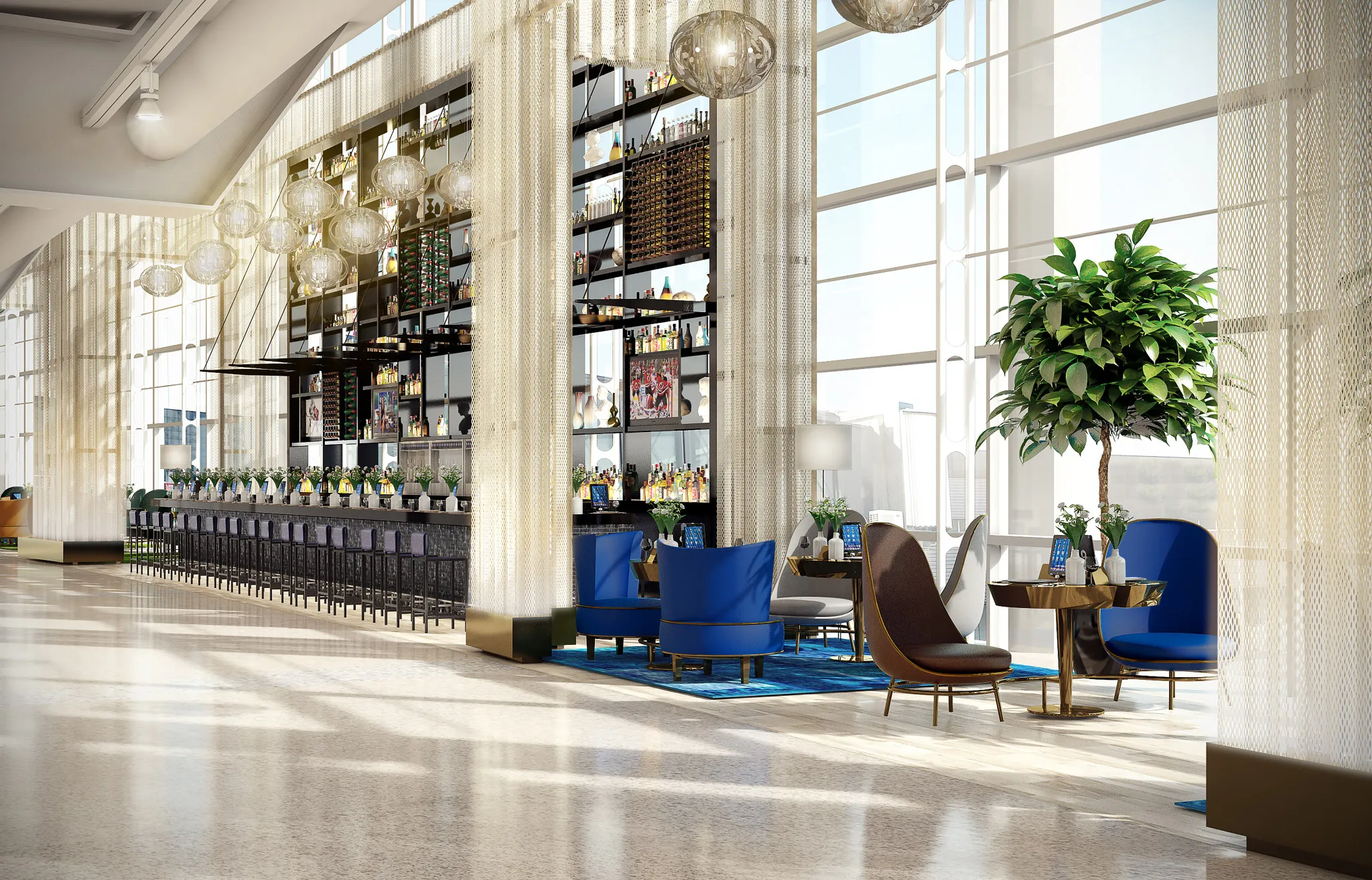少数城市拥有迷人的机场,但罗克韦尔并没有以伦敦的希思罗机场或阿姆斯特丹的史基浦机场为设计模型。相反,他从剧院、纽约的麦迪逊广场公园和欧洲市镇广场等多种地方汲取灵感。由于所有场馆都是定制和详细的,它们可以作为地标,帮助乘客在航站楼中导航。罗克韦尔表示,这种布局解决了机场的难题,即走进一个看起来像你刚刚经过的走廊。