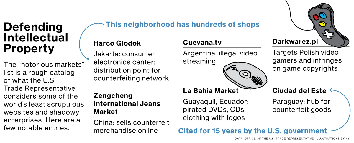 美国贸易代表迈克尔·弗罗曼于3月5日发布了“臭名昭著市场”名单,这是一个全球性的曝光行动,旨在识别假冒商品的中心和大规模交易假货的商家,从牛仔裤到汽车零件,以及非法销售版权音乐和视频的数字盗版者。USTR已经连续五年发布该报告,并表示这取得了成效。“我们看到那些多年来抵制变革的企业开始转向合法商业,”副贸易代表罗伯特·霍利曼说。