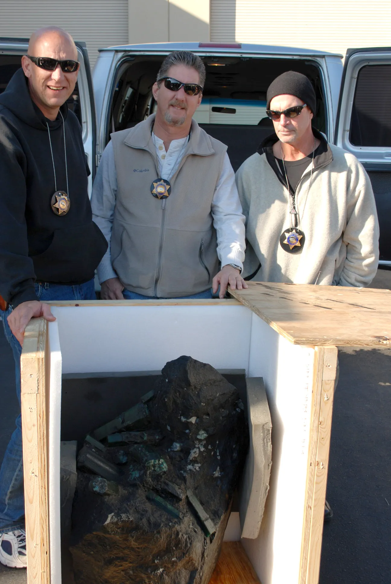 来源:洛杉矶警长局到下午时分,莫里森冷静下来,同意将巴伊亚翡翠交给当局,至少在其所有权得到解决之前。两天后,米勒和盖曼带领一队六辆载满M4和AR-15突击步枪的车辆,从洛杉矶驶往拉斯维加斯,在那里,他们在直升机护送下,在一个储存设施取回了翡翠。无论这块石头的真实价值如何,加利福尼亚州现在已完全参与到巴伊亚翡翠的传奇中。在返回的路上,盖曼和米勒给科内托打了电话,告诉他所有840磅的翡翠安全地在州政府手中。“谢天谢地,”科内托说。