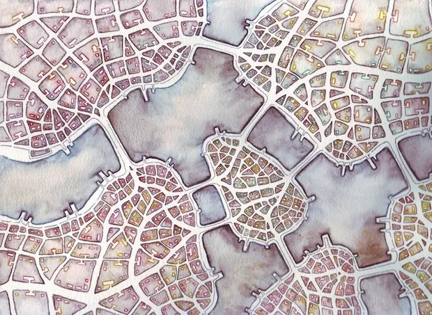 艾米莉·加菲尔德的水彩画描绘了虚构的地方并研究城市的分形形状 - 彭博社