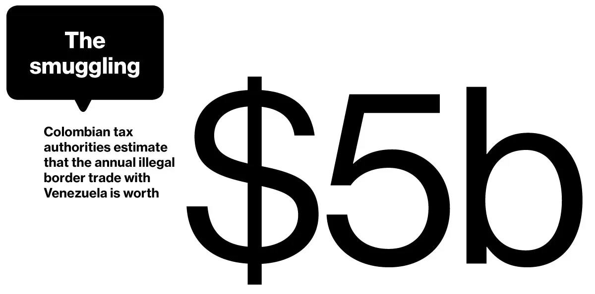 哥伦比亚海关局局长圣地亚哥·罗哈斯(Santiago Rojas)表示,与委内瑞拉的协调改善、对边境区域的空中监控以及使用特种部队控制跨境土路,帮助在过去一年中将走私减少了一半。尽管如此,大量走私仍然在继续。“如此不同的汇率产生了与套利相关的商业,”罗哈斯说。“这产生了一系列复杂的做法。”