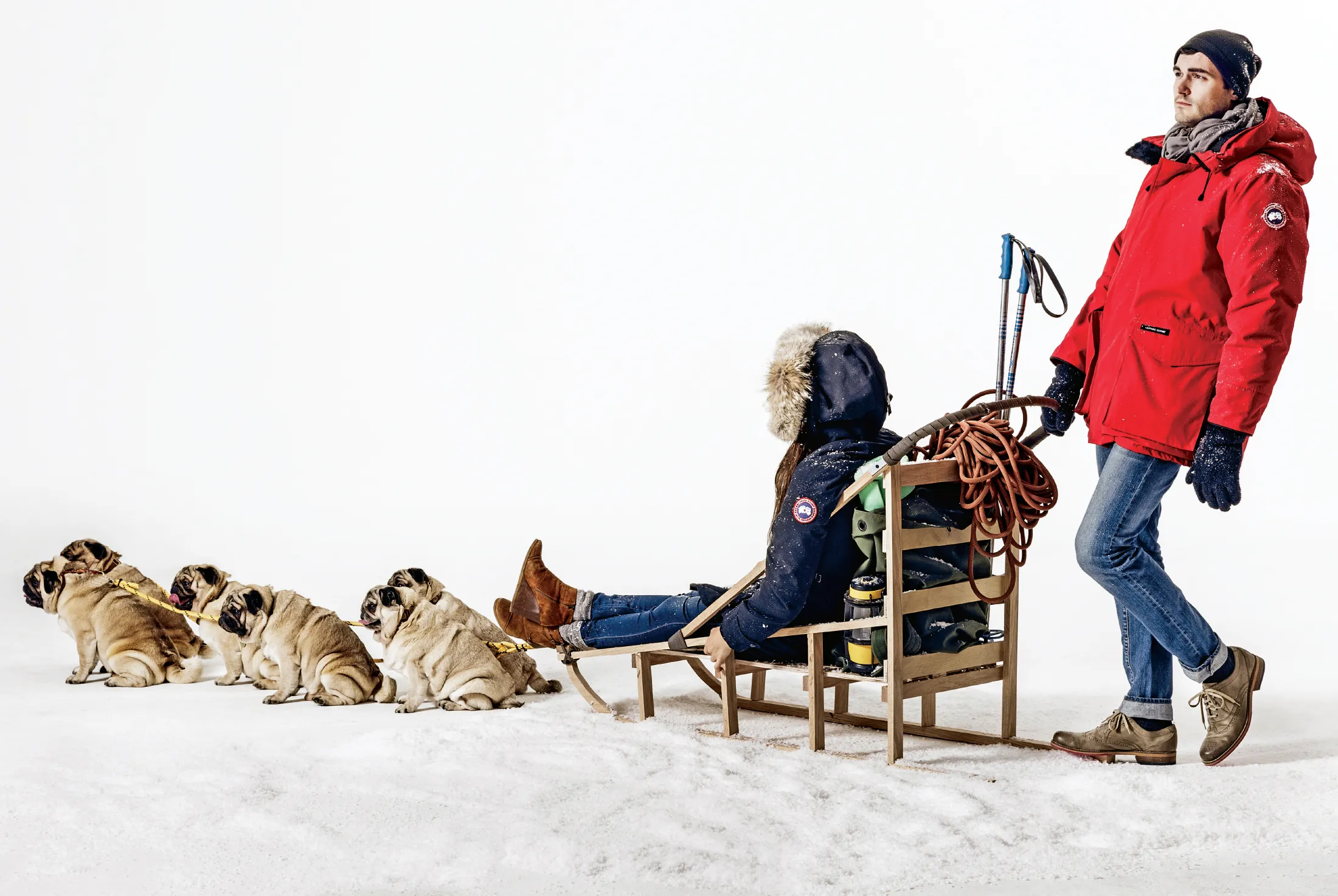 当然,每个人都有权发表自己的意见,但如果将时尚定义为购物者会寻找并花很多钱购买的东西,那么加拿大鹅的派克大衣就是2015年寒冷冬季中最时尚的单品。在纽约、米兰、巴黎、达拉斯和首尔,加拿大鹅无处不在,穿着者在匆忙赶往办公室的途中将拉链拉到下巴,或在通风的咖啡馆和意大利餐厅里披在肩上。这些外套出现在大片电影中,以及无数名人在咖啡店奔波时的狗仔镜头中。其中一件在现在传奇的*《体育画报》* 封面拍摄中与比基尼底裤搭配。如今,加拿大鹅生产帽子、防风衣、背心和雪裤,但必备单品是派克大衣,黑色或深蓝色,带有郊狼毛皮修饰的帽子,价格从约600美元起,某些型号甚至达到四位数。公司的标志是一个圆盘,里面有一个以枫叶为括号的红白蓝色的北极地图,已经在愿意花一千美元买外套的城市环境中变得不可避免(尽管人们大部分时间都待在室内)。