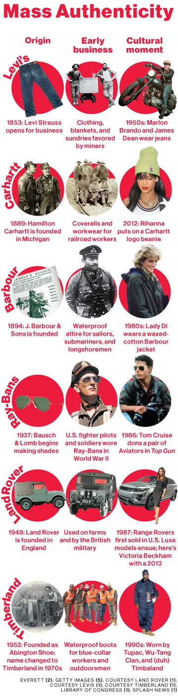 当然,并不是每个购买加拿大鹅派克大衣的人都有这些幻想。受欢迎程度有其自身的动力。今年,加拿大鹅的吸引力无疑超越了其来源,主要是因为每个人都在穿它。这种动态是强大的,至少在一段时间内是如此。一些具有类似联想的品牌——路虎是最好的例子——在转变为地位象征的同时,仍然保持着一种真实性的光环。然而,危险在于,越是在地铁上或牙医办公室的衣架上看到加拿大鹅的派克大衣,它们看起来就越平常。