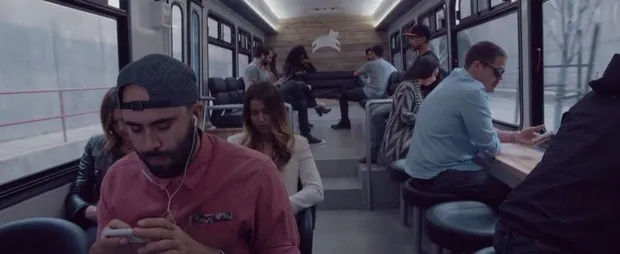 不。激动人心的音乐是在宣传旧金山的新 豪华巴士 服务, Leap Transit。