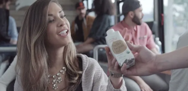 使用你的手机购买健康食品,比如这种素食、有机、无麸质的蛋白质奶昔。目前提供的小吃有蓝瓶咖啡和快乐麋鹿果汁(也许这个“Kale Earnhardt”浆液?):