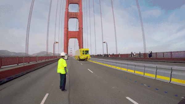 可逆车道是一个优雅的解决方案,但它们的实施出乎意料地棘手。例如,金门大桥有六条狭窄的车道,每月有300万辆汽车经过,因此每一寸道路都至关重要。可逆车道在半个多世纪前安装在那里——但这意味着在所有这些年里,每天两次,路工必须手动移动车道标记,以向司机显示每条车道的方向。