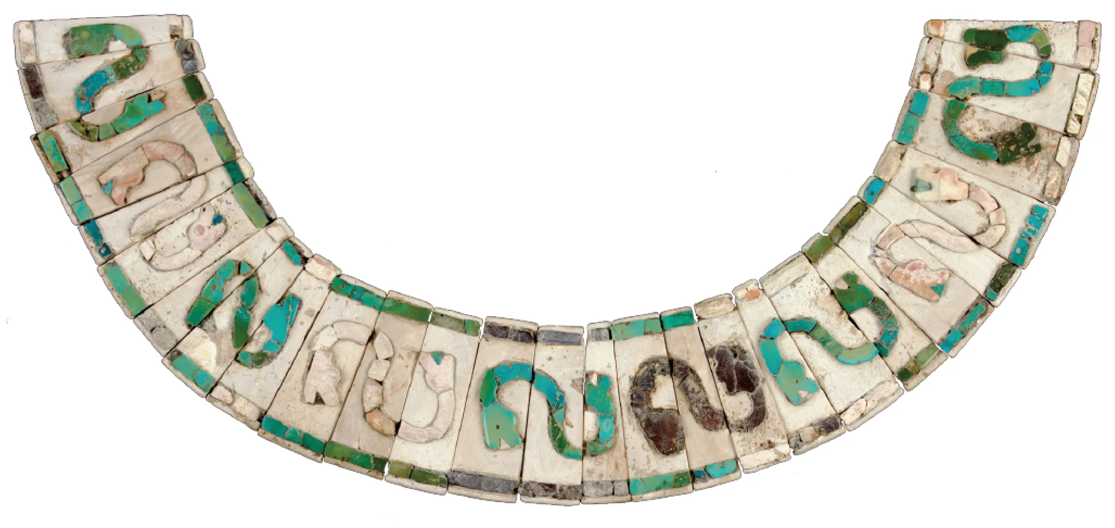 **莫奇卡贝壳和绿松石项链,**约公元200年-600年。2006年以5,400美元售出。