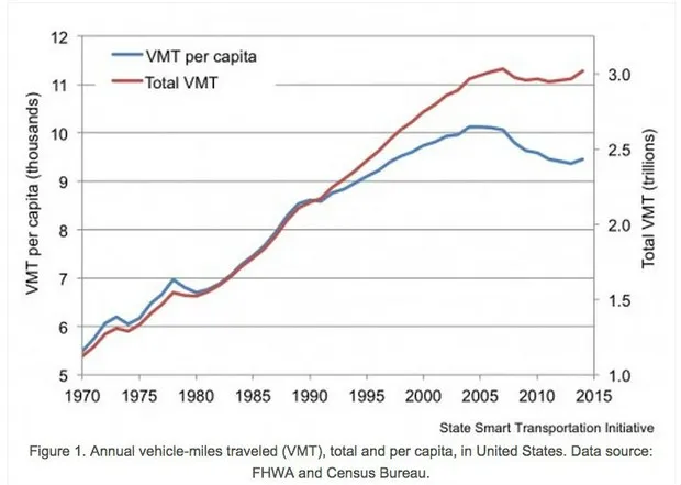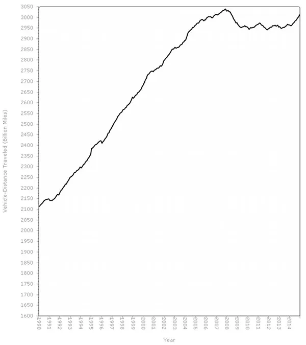 理查德·梅森纳 / Cyclelicious / Flickr联邦公路管理局最近发布了美国2014年的驾驶数据,乍一看,这些数字质疑了美国已经达到“汽车峰值”的整个概念。总行驶里程同比增长了1.7%——在下半年激增2.5%。美国的驾驶在2014年结束时几乎达到了2007年创下的历史最高点,并且似乎正在上升。