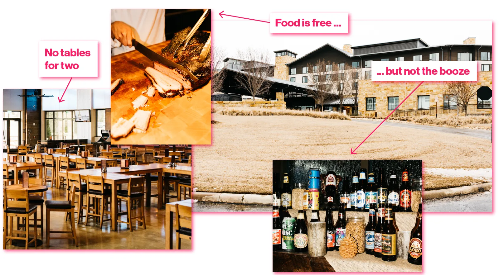 重新弥补损失的时间还有很多。课程结束时,走廊尽头的餐厅已经开始提供现做的煎蛋卷、堆积如山的熏三文鱼、不可思议的奶油炒蛋(配有三种自制莎莎酱)以及其他十几种选择,全部免费。今晚晚些时候,客人们将参加一场铁厨风格的名人烹饪挑战;之后,他们可以在现场的体育酒吧狂欢到凌晨1点。“我喜欢这里,”一位在Yelp上的评论者说,这个目的地的平均评分为五星。“如果可以的话,我愿意住在这里。”